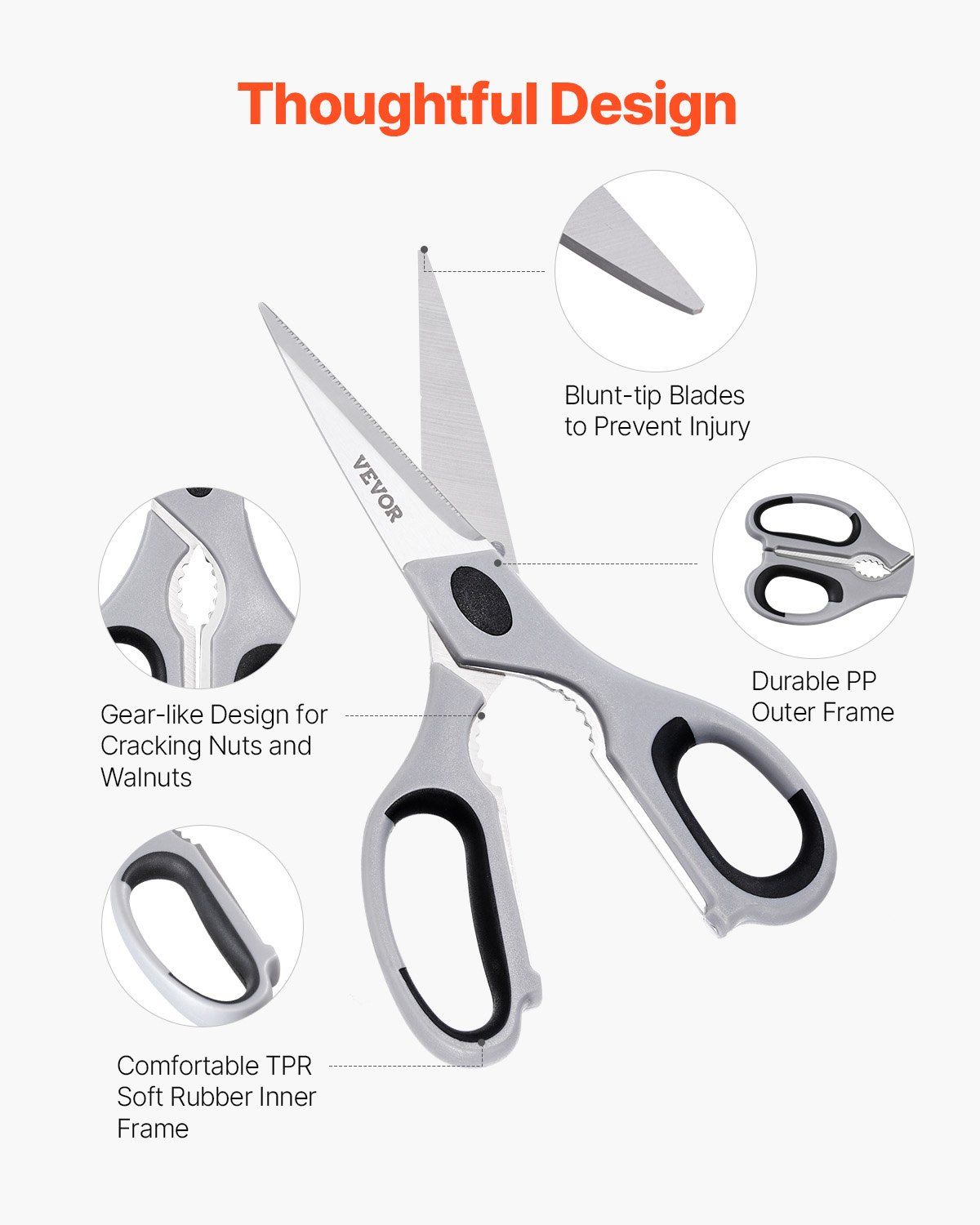 1.Versatile Kitchen Scissors: Cut through your kitchen prep with ease! These multi-purpose kitchen scissors are perfect for handling everything from vegetables and herbs to meats, packaging, and nuts. Whether you're slicing, snipping, or chopping, expect clean and precise cuts every time.