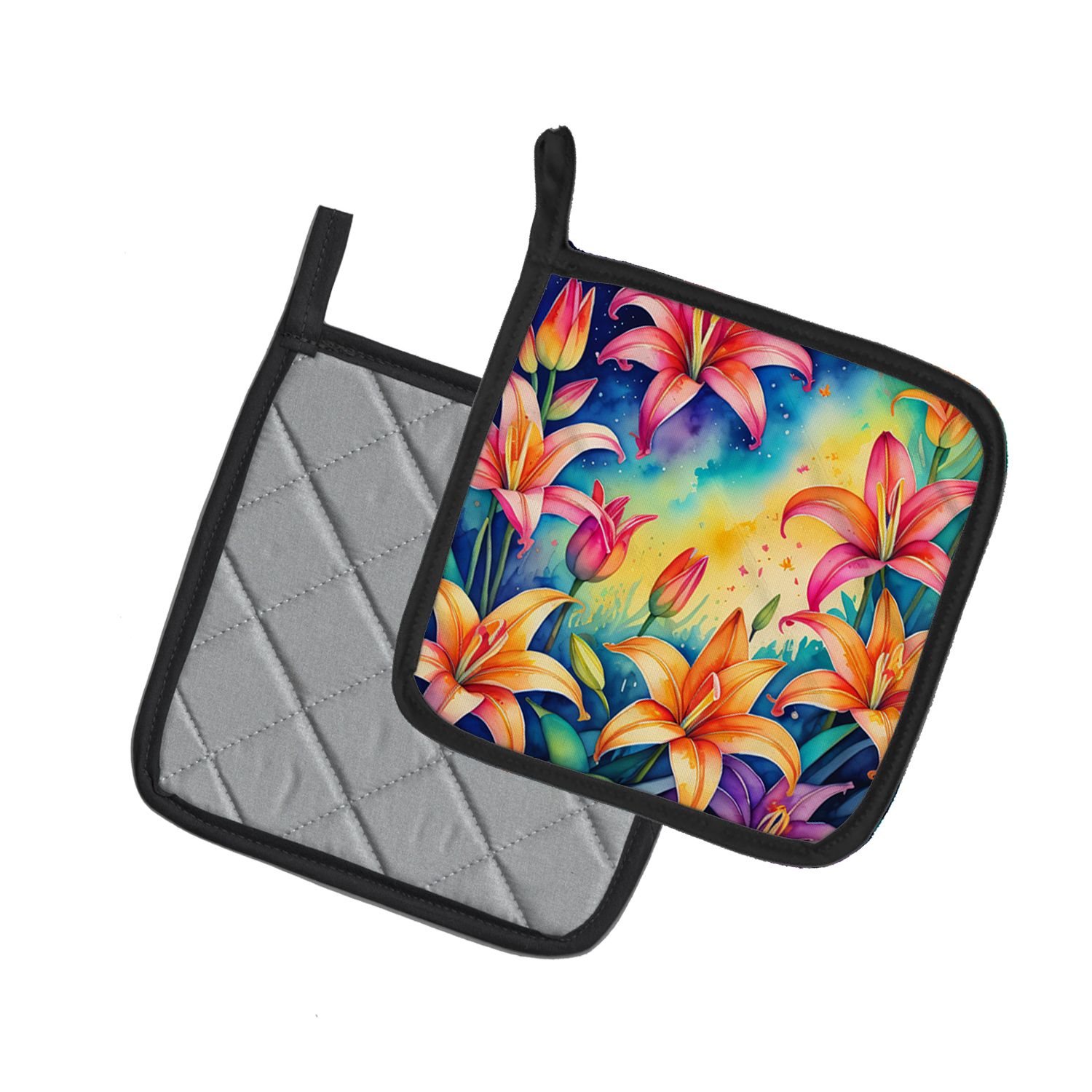 Home > Colorful Lilies Pair of Pot Holders Kitchen Heat Resistant Pot Holders Sets Oven Hot Pads for Cooking Baking BBQ, 7 1/2 x 7 1/2