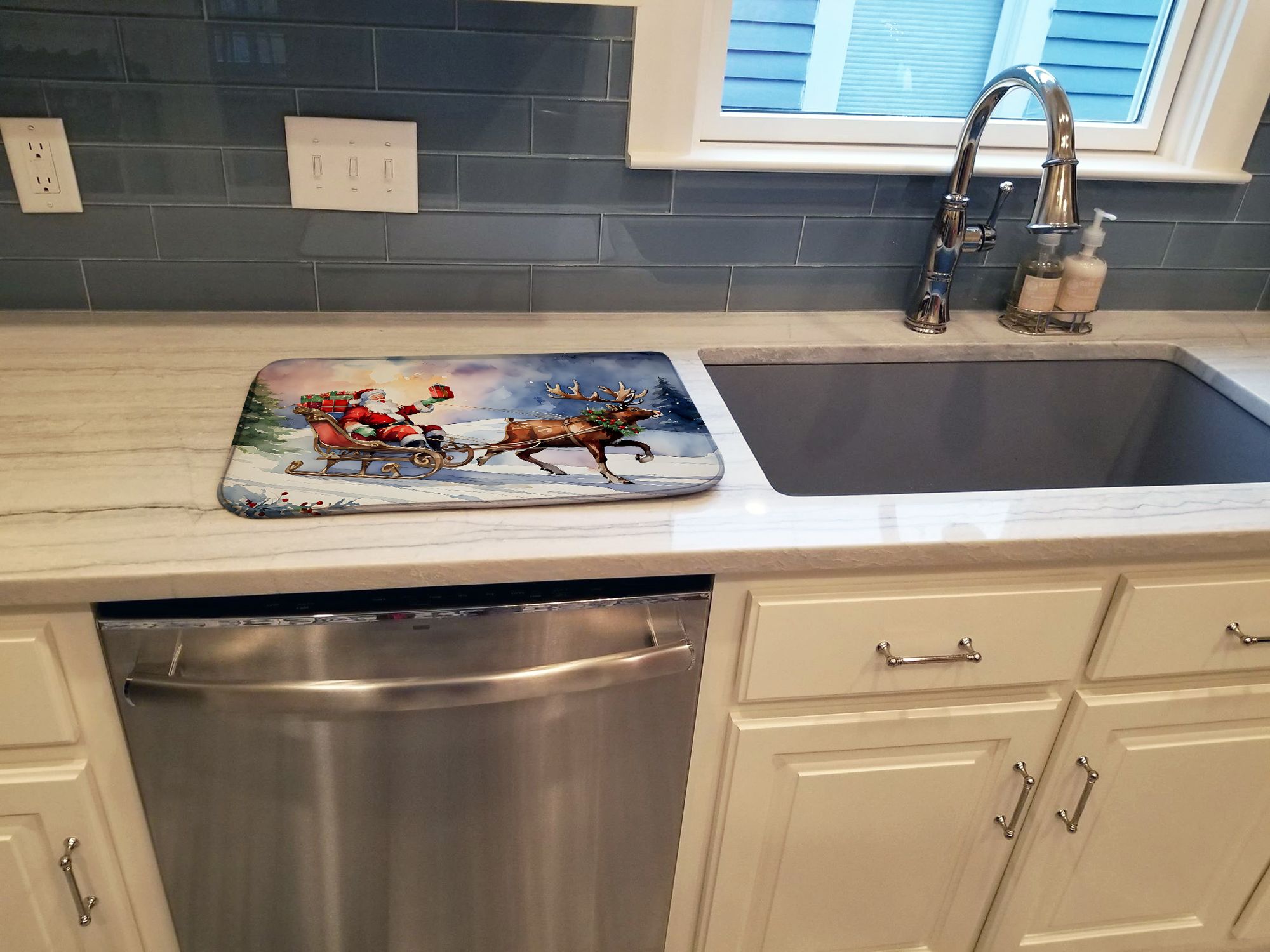 Home > Christmas Santa and Sleigh Dish Drying Mat Absorbent Dish Drying Mat Pad for Kitchen Counter Dish Drainer Mat for Countertop, 14 x 21", Multicolor