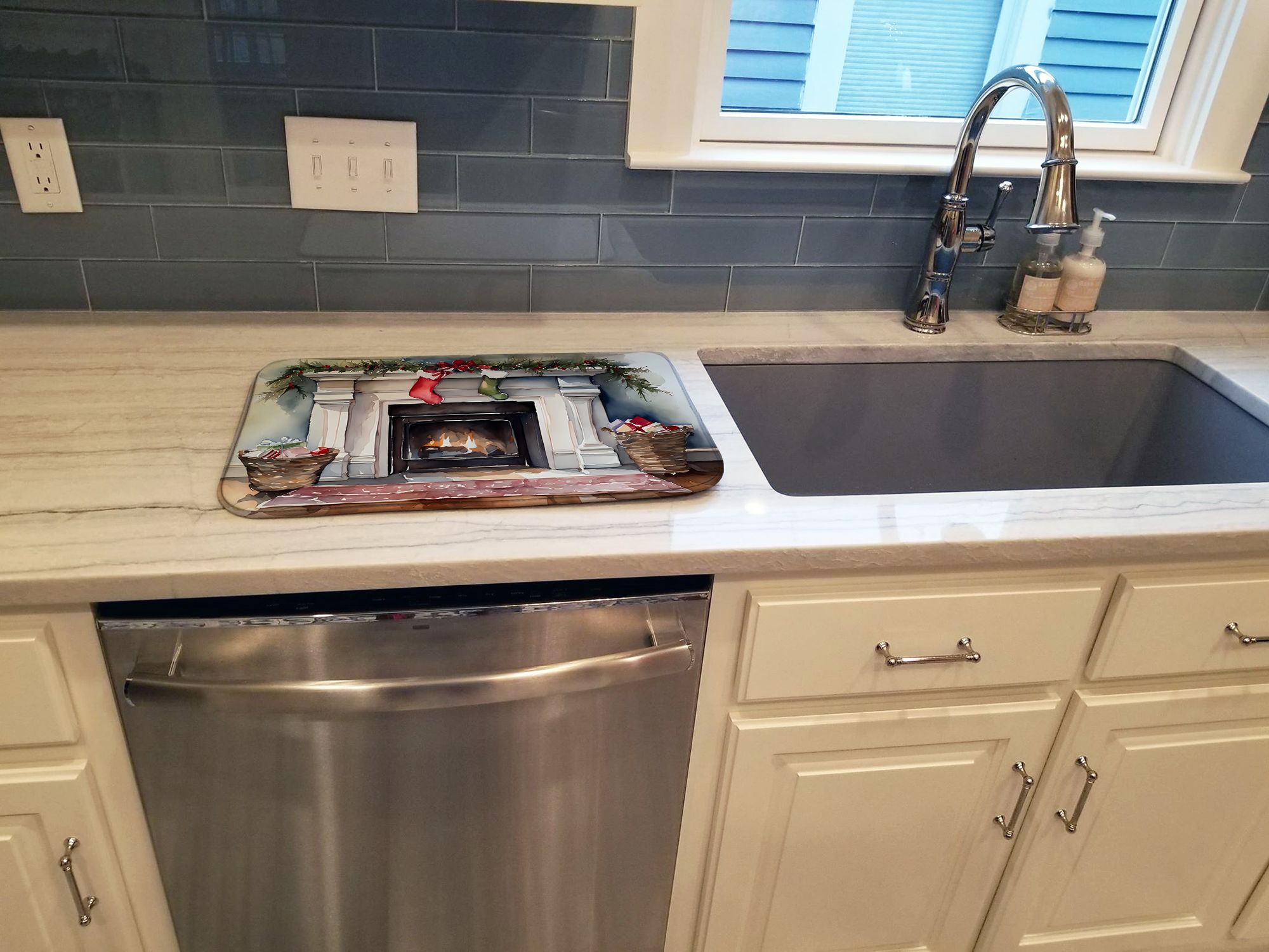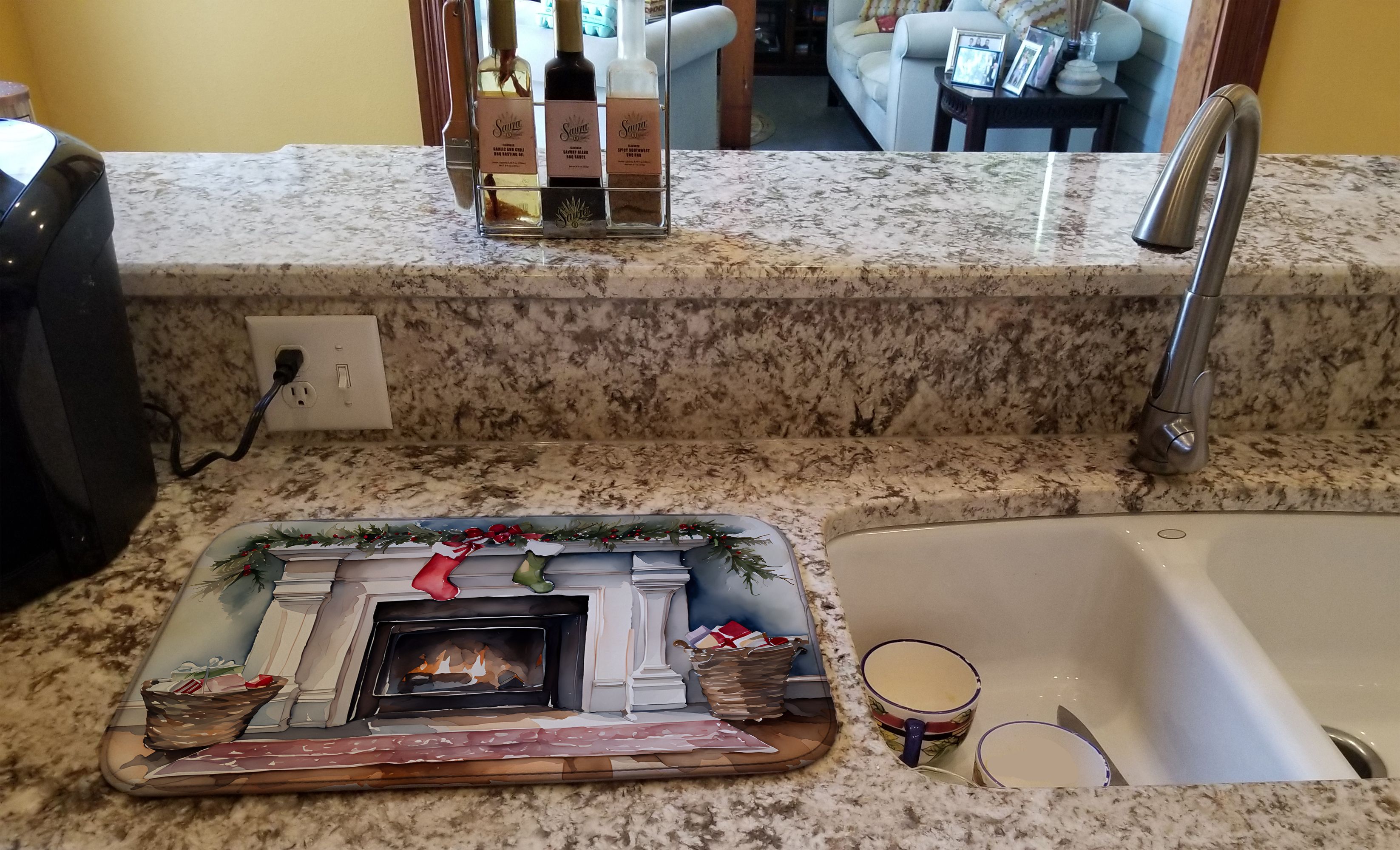 Celebrate Christmas with this Christmas Dish Drying Mat. Say goodbye to messy countertops and soggy dish towels with our innovative dish drying mat. Our high-quality dish drying pad is designed to keep your countertops dry while offering a stylish and efficient solution. Whether you're air drying dishes, glasses, stemware, silverware, pots, pans, bottles, or even fruits and vegetables, our dish mat is the perfect choice. The 14 inches x 22 inches size fits most counters and dish drying racks, and the non-slip design ensures stability. Made with water-absorbent polyester and a polyurethane foam insert, our dish drying mat is not only functional but also durable. It's machine washable and printed in the USA for long-lasting use. The beautiful artwork adds flair to your kitchen decor, making it a perfect housewarming gift or present for any occasion. Upgrade your kitchen experience with our absorbent and versatile dish drying mat.