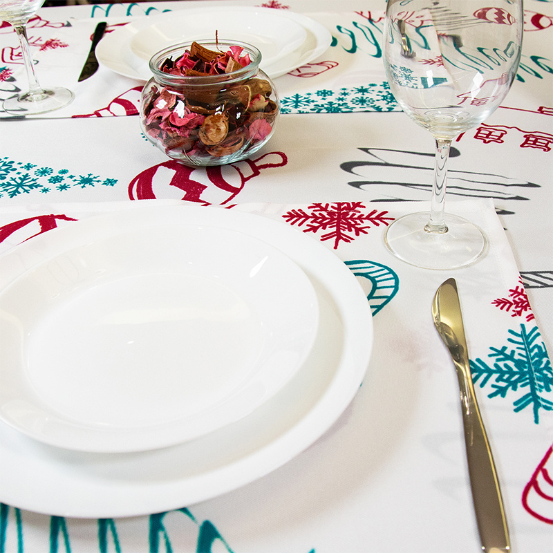 Home > Muwago Christmas Garland Trimming Printed Fabric Tablecloth For Dining Room Decoration Washable Anti-Stain Anti-Oil Table Cover