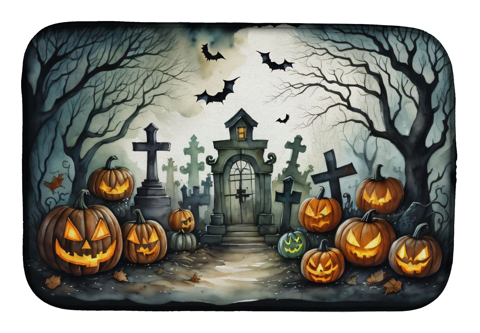 Home > Graveyard Spooky Halloween Dish Drying Mat Absorbent Dish Drying Mat Pad for Kitchen Counter Dish Drainer Mat for Countertop, 14 x 21", Multicolor